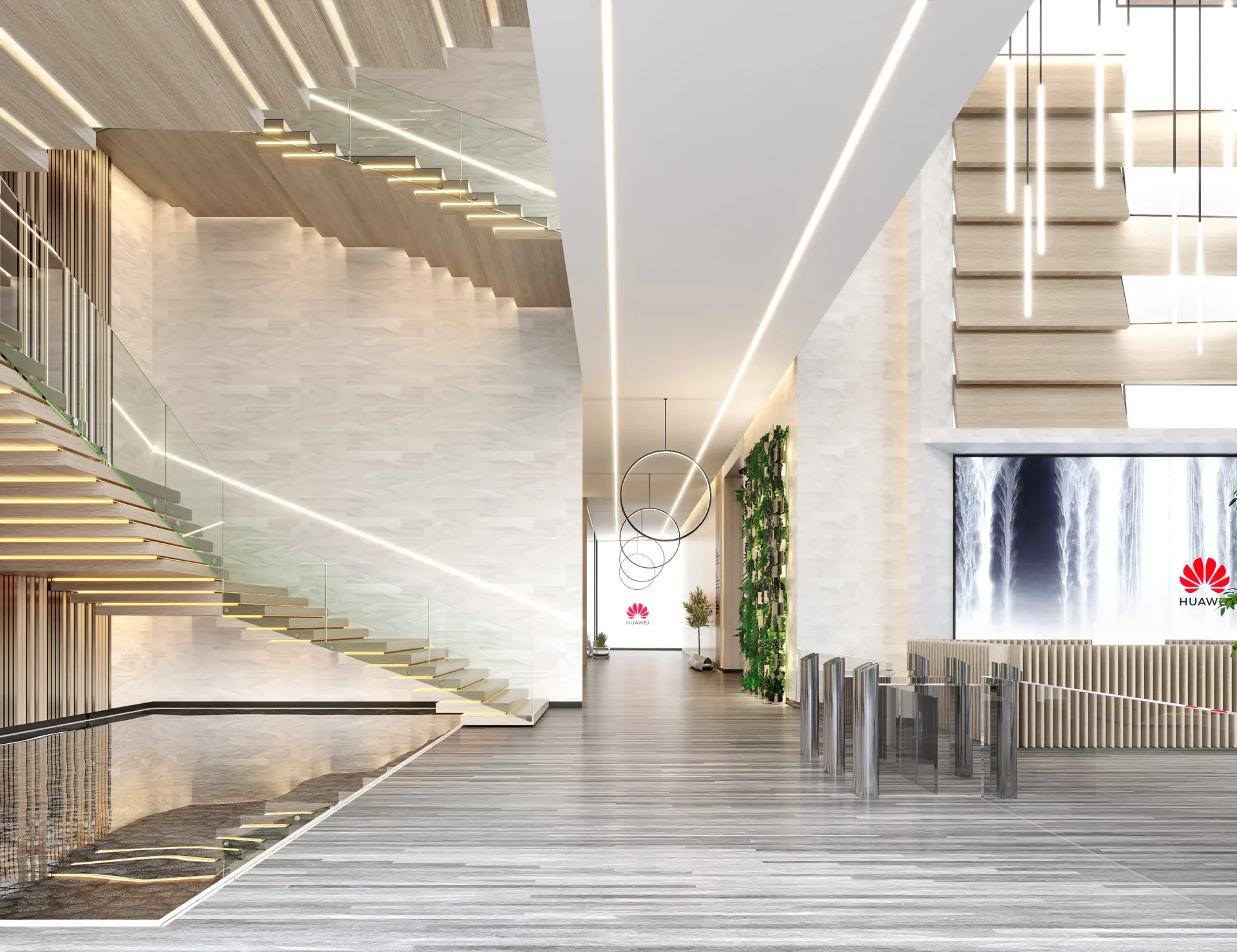Located in Shanghai. The R&D of Huawei will create an office that has more focus to create a better atmosphere for their worker. Thus playing with wood and vegetation is one of the ways to make their worker enjoy working at the office.